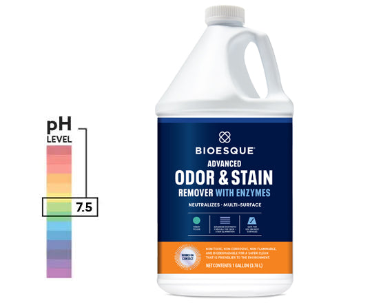 Bioesque® Advanced Odor & Stain Remover is formulated to effectively eliminate odors and remove stains without the use of harmful or toxic chemicals. Featuring an advanced enzymatic formula, Bioesque® Odor Neutralizer is excellent for removing troublesome stains such as coffee, wine, milk, blood, dirt, and more.